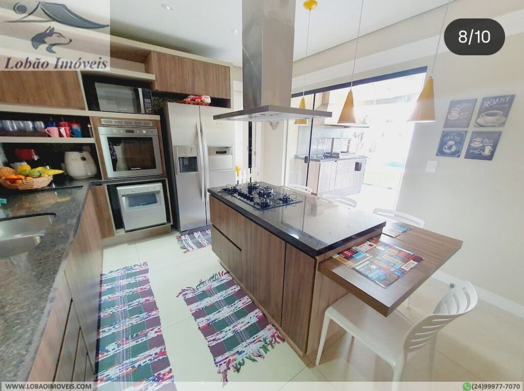 🍽️ Cozinha moderna com ilha, armários planejados, coifa e despensa