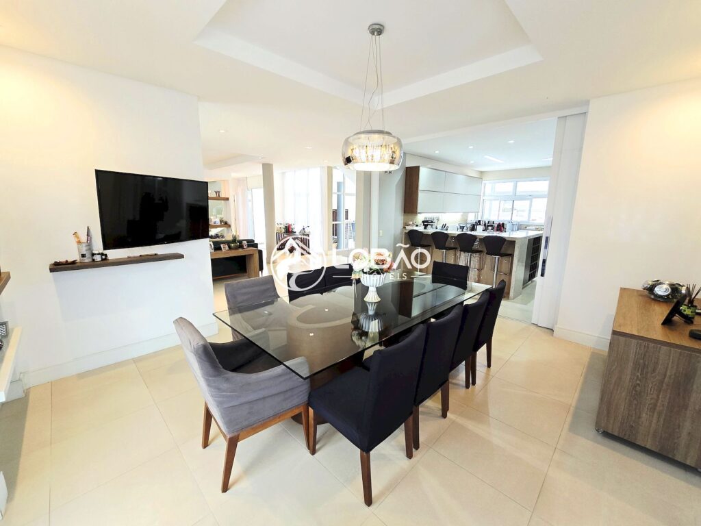 Ambientes sociais generosos e perfeitamente integrados para receber com elegância: ✔ Sala ampla integrada à sala de jantar