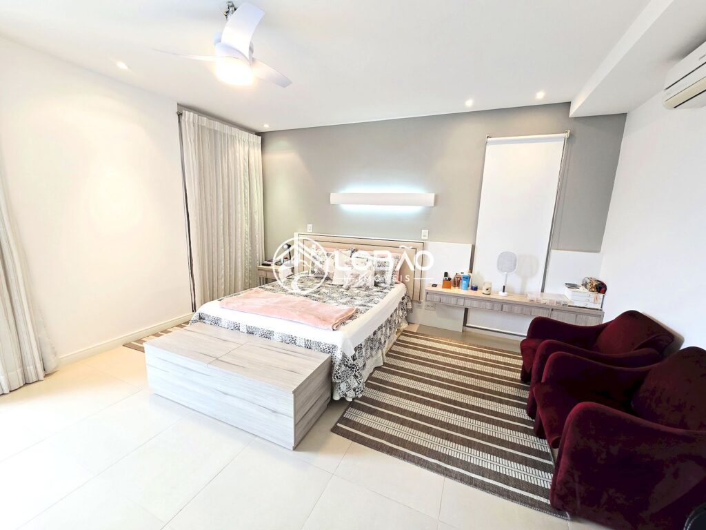 A área íntima foi planejada para proporcionar privacidade e requinte: ✔ 4 suítes plenas, todas com closet e sacada