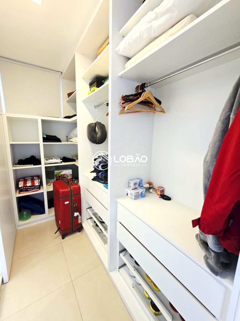 Ampla, sofisticada, com sacada e vista privilegiada, espaço para home office, banheiro espaçoso e um closet impressionante com armários planejados de piso ao teto.