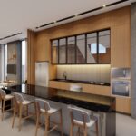 🍽 Cozinha incrível com armários planejados touch, ampla ilha em granito e copa integrada ao quintal — muita luz natural e praticidade!